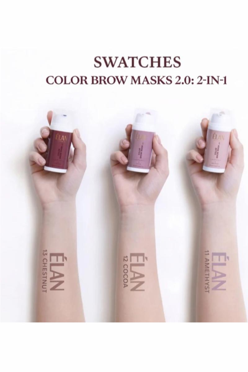 - Den toner ikke bare øyenbrynshårene, men også huden (12 COCOA og 13 CHESTNUT);