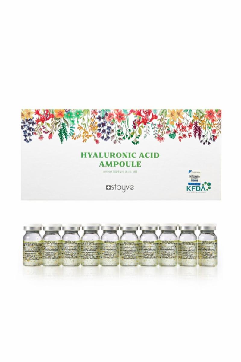 Hyaluronsyreampulle inneholder natriumhyaluronat som hovedingrediens for å fylle hudvevet med fuktighet grundig og bidrar til å forbedre fuktighetsgivende kraft. Den inneholder også andre ingredienser som Acetyl Hexapeptide-8 og Palmitoyl Tripeptide-1 som styrker hudens fasthet og reduserer rynker også.