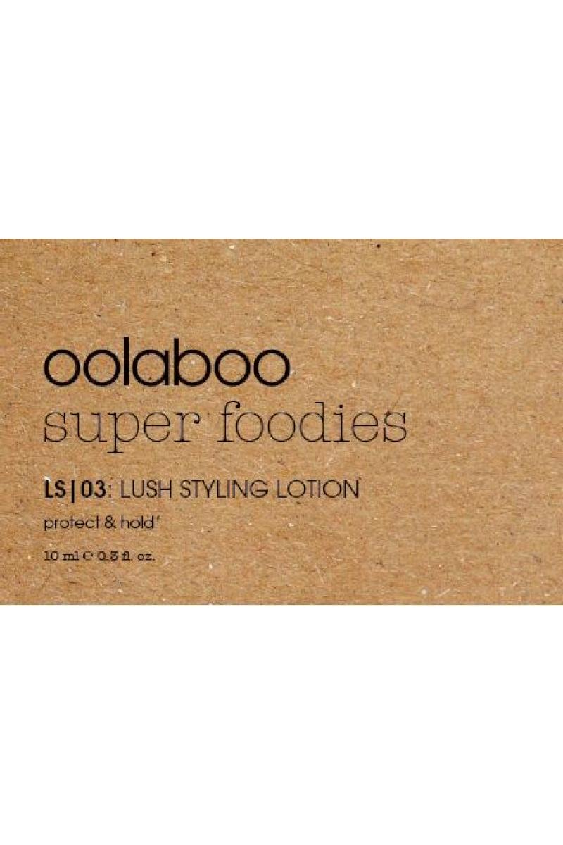 Fordel super foodies lush styling lotion over fuktig hår fra røttene til endene. Føn tørt eller la håret lufttørke for varig volum, eller gni det gjennom tørt hår for å skille og fremheve lokkene.