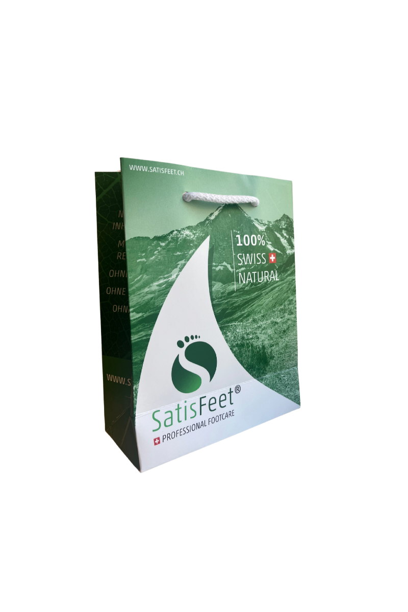 SatisFeet papirposer er perfekt for salonger som ønsker å reklamere for sin kompetanse som fotekspert. Posene har ideell størrelse til goodiebags.