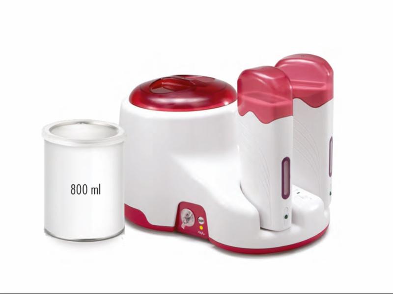 Dette profesjonelle apparatet lar deg varme opp 2 patronvarmere og en grytevarmer samtidig (eller separat) for enkel og effektiv depilering på alle områder som skal depileres.
