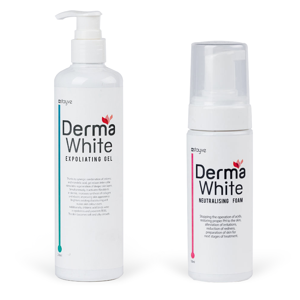 Stayve Exfoliating Gel inneholder shikimic og mandelsyre som stimulerer en sunn fornyelse av dypere hudlag. Samtidig forbedrer hudens elastisitet, fjerner døde hudceller, gjør hudfargen jevn. Produktet er viktig for bedre penetrering av andre produkter som følger i behandling. Neutralising Foam er for å neutralisere syrer, gjenopprette riktig PH til huden, lindring av irritasjoner, reduksjon av rødhet, forbereder huden for neste steg av BB Glow behandling.