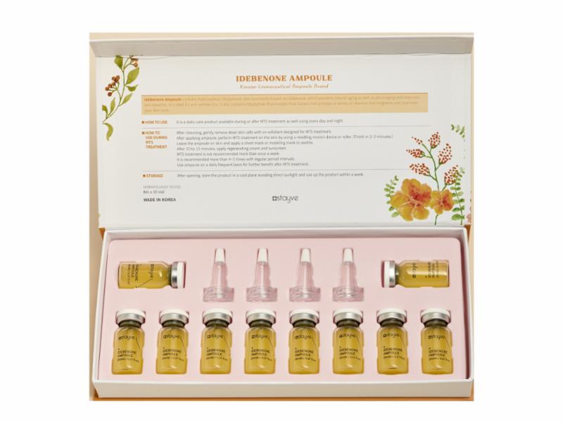 Stayve Idebenone-ampullen for mikroneedling inneholder antioksidanten Idebenone, som har fire ganger så kraftig effekt som vitamin C og ti ganger så kraftig effekt som koenzym Q10.